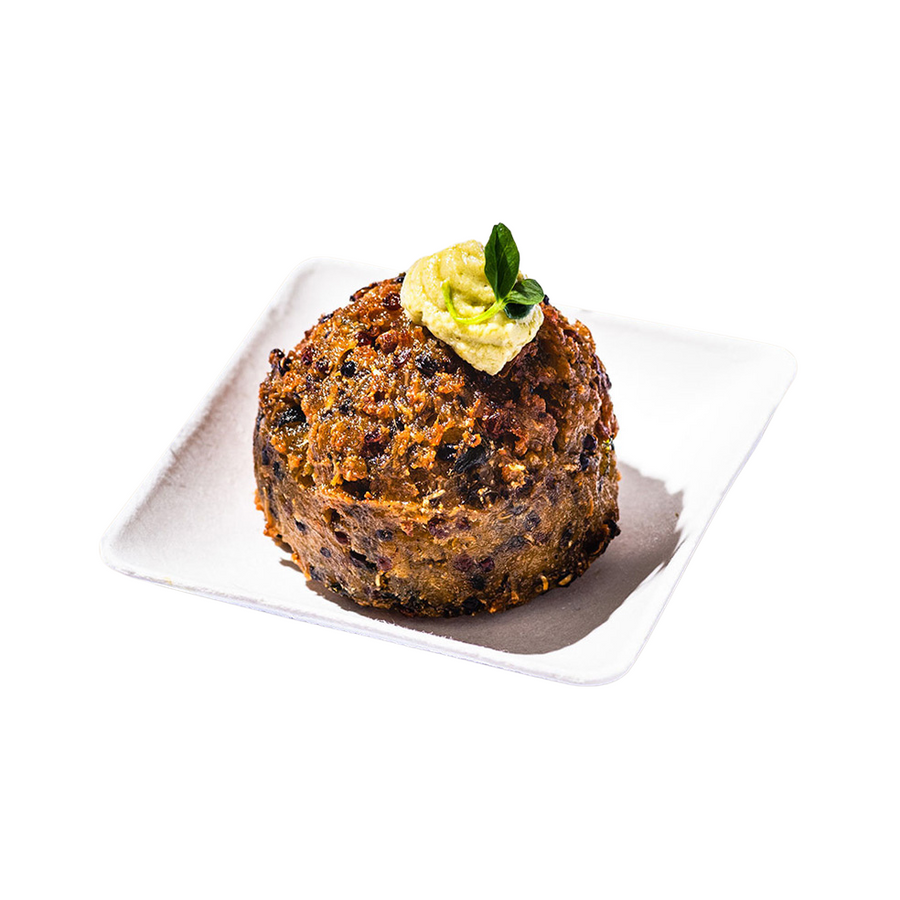 Savor the perfect combination of crispy falafel and creamy avocado edamame dip, topped with fresh pea sprouts. This vibrant, plant-based amuse-bouche is expertly crafted to serve 16 portions, offering a delicious burst of flavor in every bite.